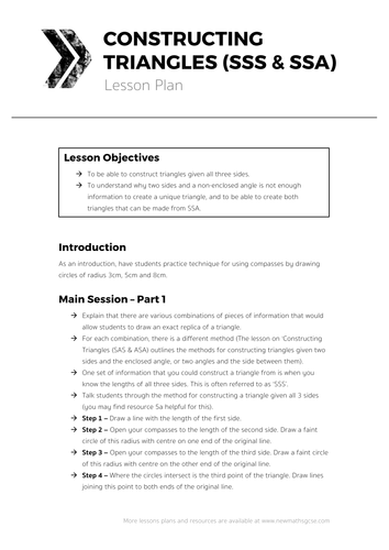 12 Constructions and Loci 100 12.2 Constructions In this section we look at how to construct triangles and various lines. You will need a ruler, a protractor and a pair of compasses to be able to draw these constructions. ... Get Doc